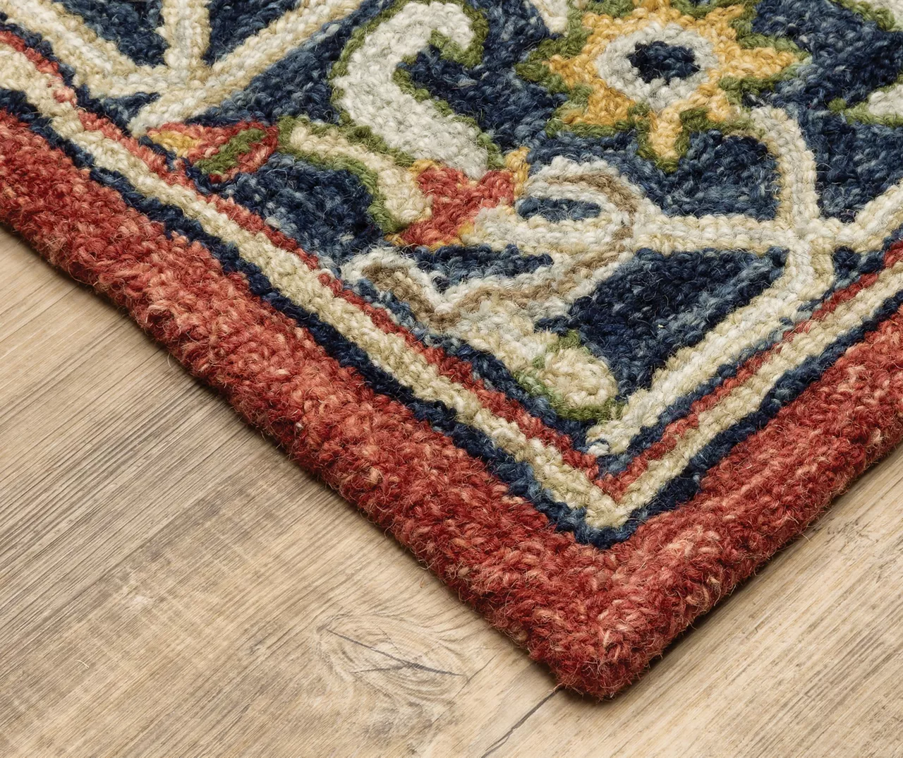 The Alfio collection features warm, sun-washed shades of red, clay and gold as well as soft, muted shades of gray, blue and green for an elegant yet rustic look. Beautifully hand-crafted of space-dyed wool in India, Alfio offers traditional Bohemian designs with a luxurious looped pile for added texture to enhance any room setting.
