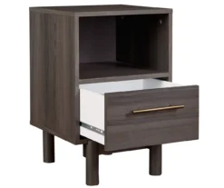 - Black rubberwood nightstand