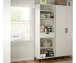 Add extra storage space to any room in your home with the System Build Evolution Ross 16” Storage Cabinet. Made of laminated MDF and particle board, the water resistant gray finish is easy to clean so the cabinet can be used anywhere. The interior of this cabinet features five shelves, three of which are adjustable, allowing you to customize your storage for both small and large items. Store and organize anything from office supplies to cleaning supplies and even kitchen pantry items. Soft close hinges are adjustable and prevent slamming doors. The adjustable feet make keeping your Cabinet level on uneven floors simple.