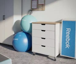 Whether you’re crafting, woodworking, painting, or just keeping up with Honey-Do Lists, an organized garage or She Shed is the blueprint to a successful project. The Vantage storage cart provides plenty of concealed storage that’s easily moves from one place to the next. The storage cart made from laminated engineered wood with a beautiful weathered oak top for a clean and classic look to match any décor. The four drawers are perfect for storing items out of sight while the cut-out style handles allow you to easily peek into each drawer to find what you need in a jiffy.