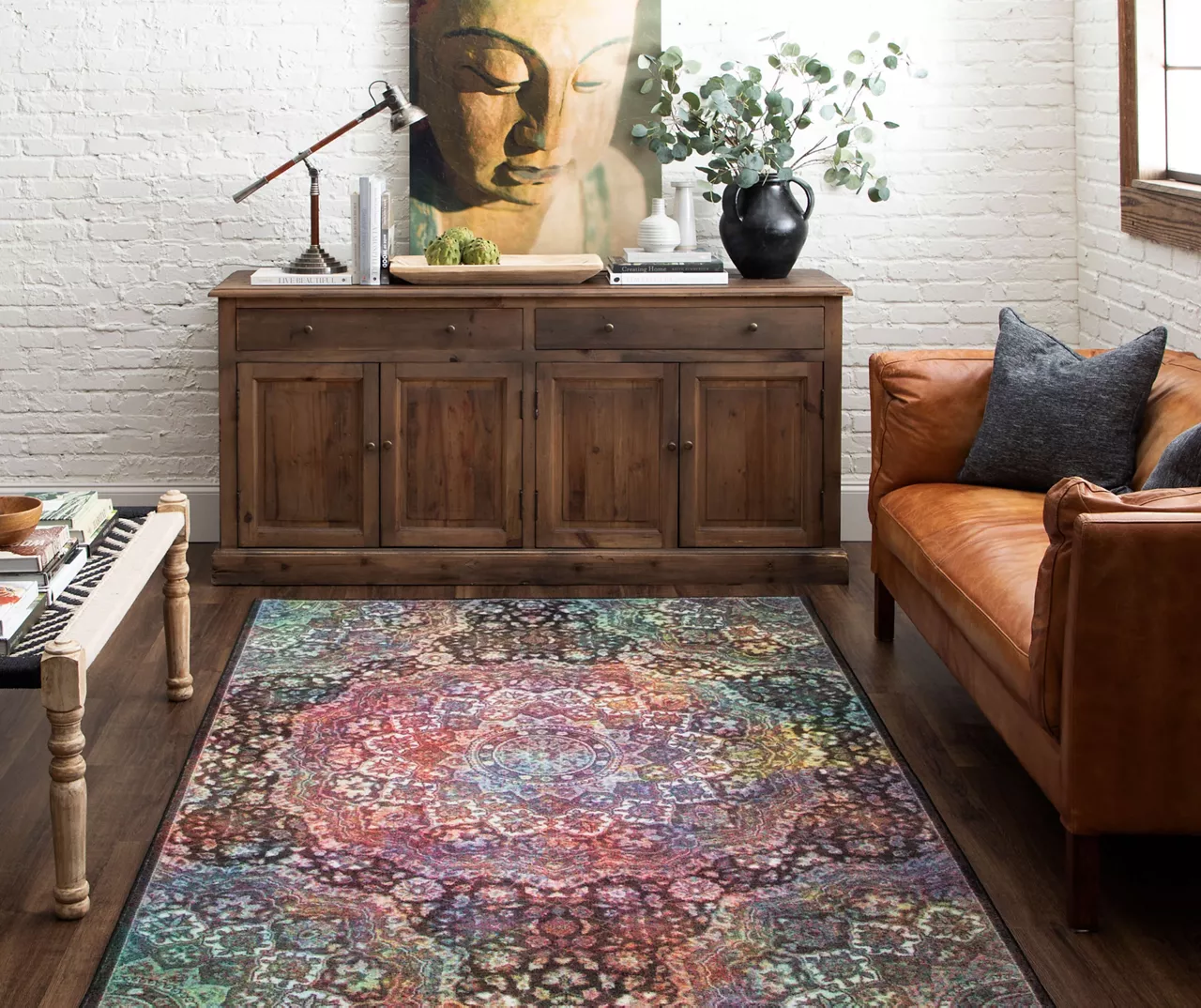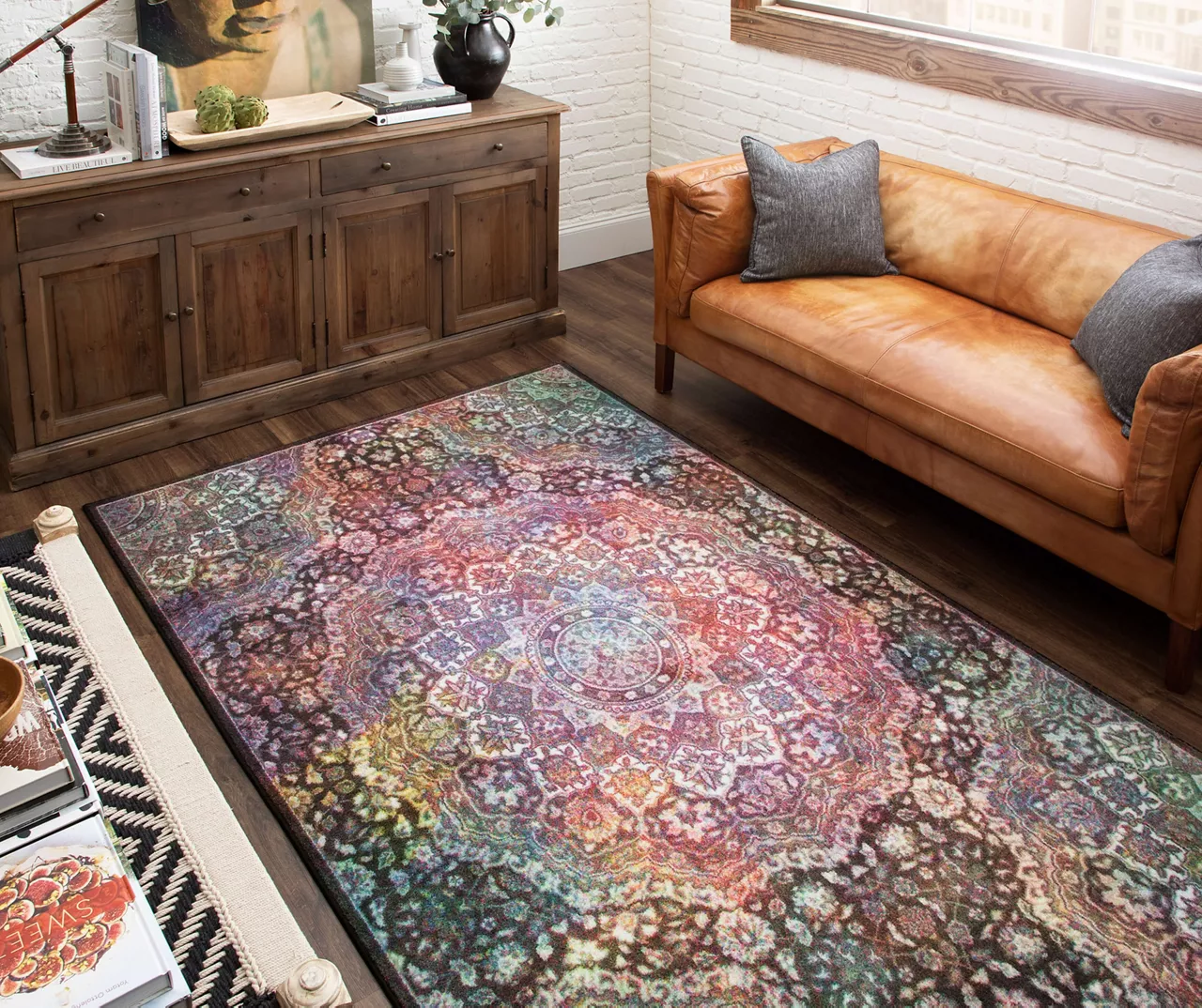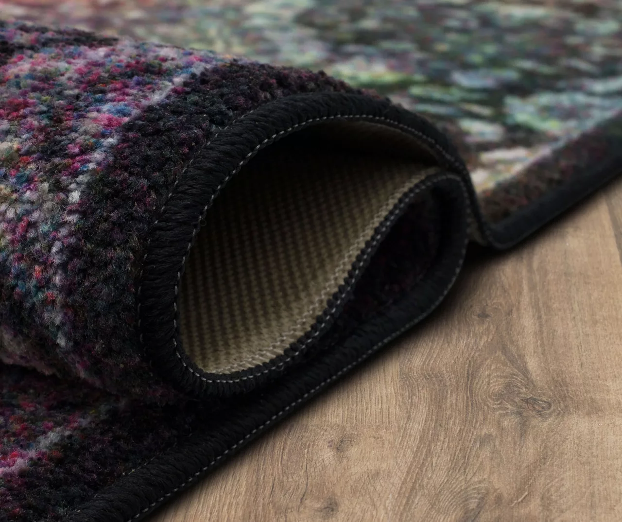 Boho-chic has never looked better than the mesmerizing modern medallion motif of Mohawk’s Joliet area rug. Inspired by timeless tapestry artwork, the detailed design features a vibrant medallion print in bright shades of purple, blue, yellow and white on black. Thoughtfully crafted in the U.S.A. utilizing Mohawk Home’s exclusive precision dye-injected printer, this rug is designed on a plush EverStrand™ tufted base made from premium recycled polyester. A non-skid latex backing helps to keep things in place, and the low pile is durably designed to easily work with doorways or furniture while withstanding everyday use.