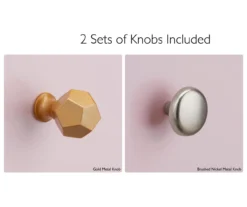 - Customize the look with either a geometric or round drawer knob
