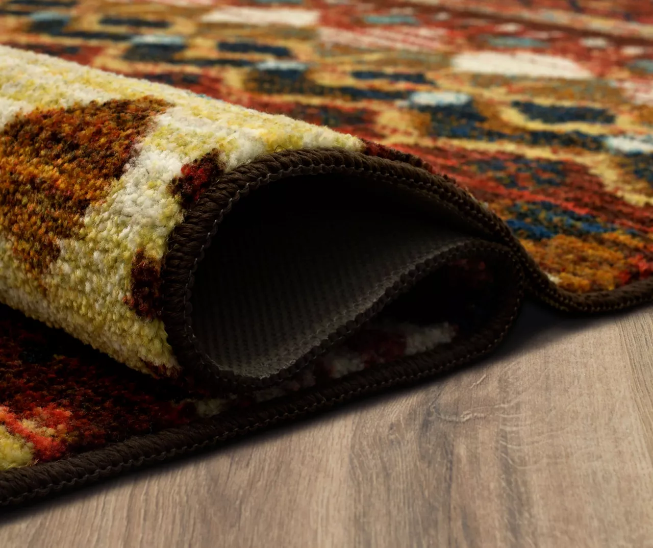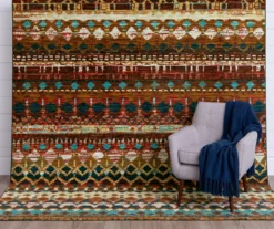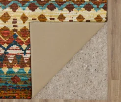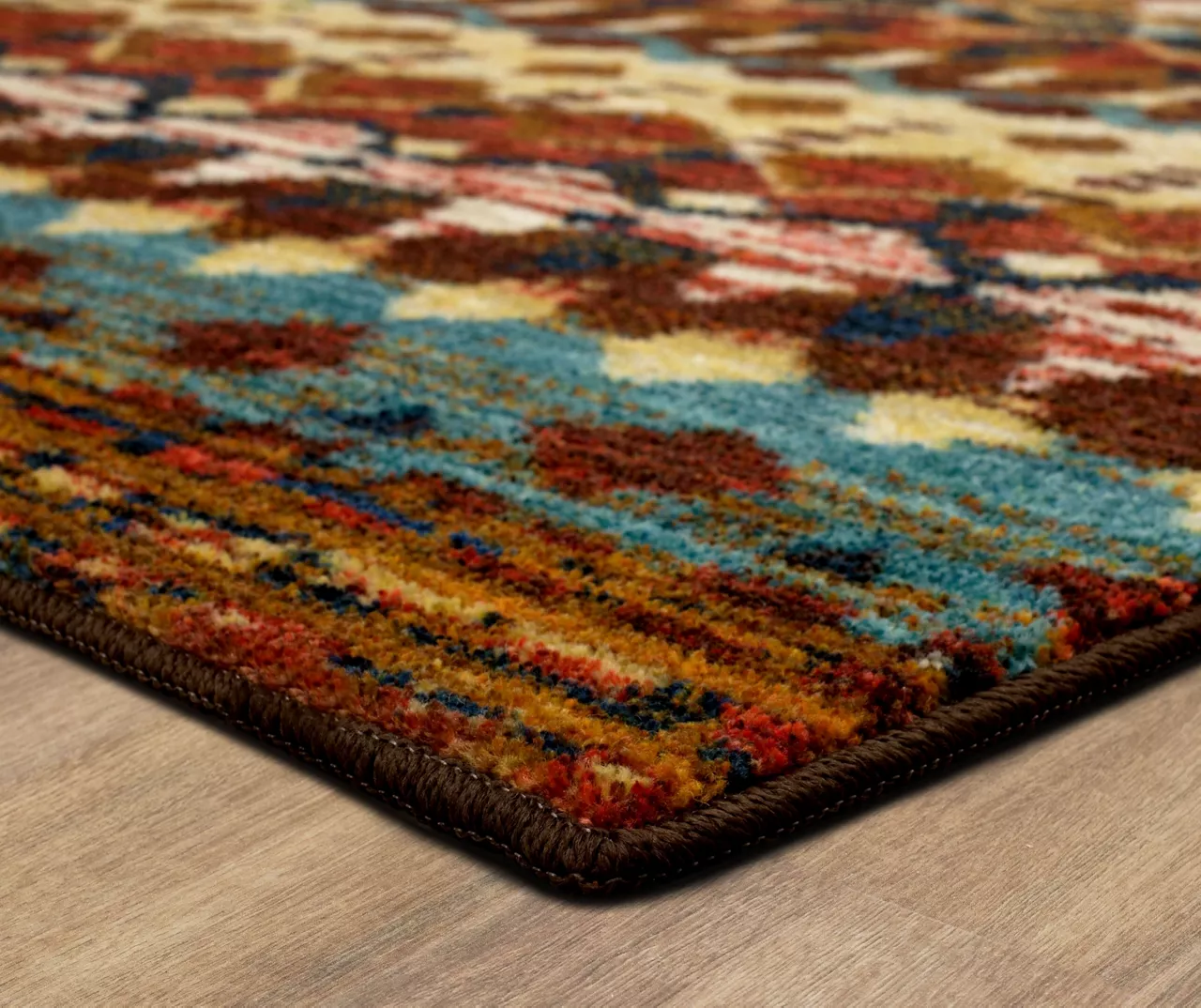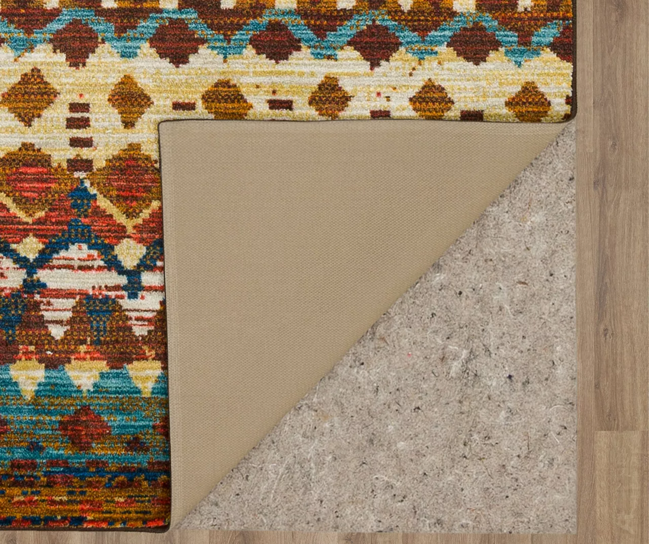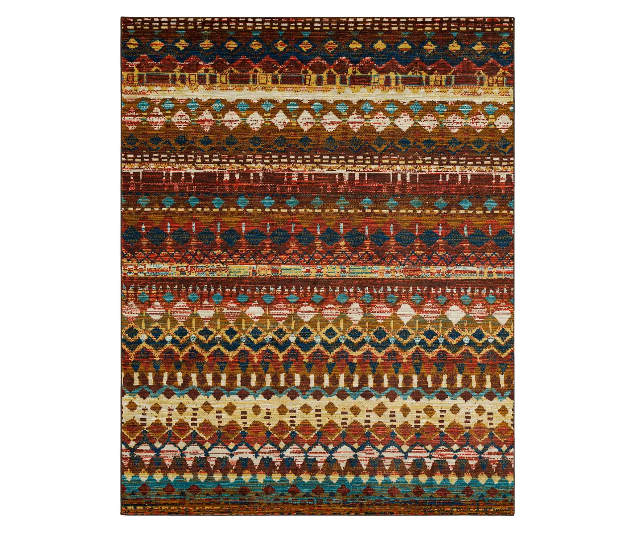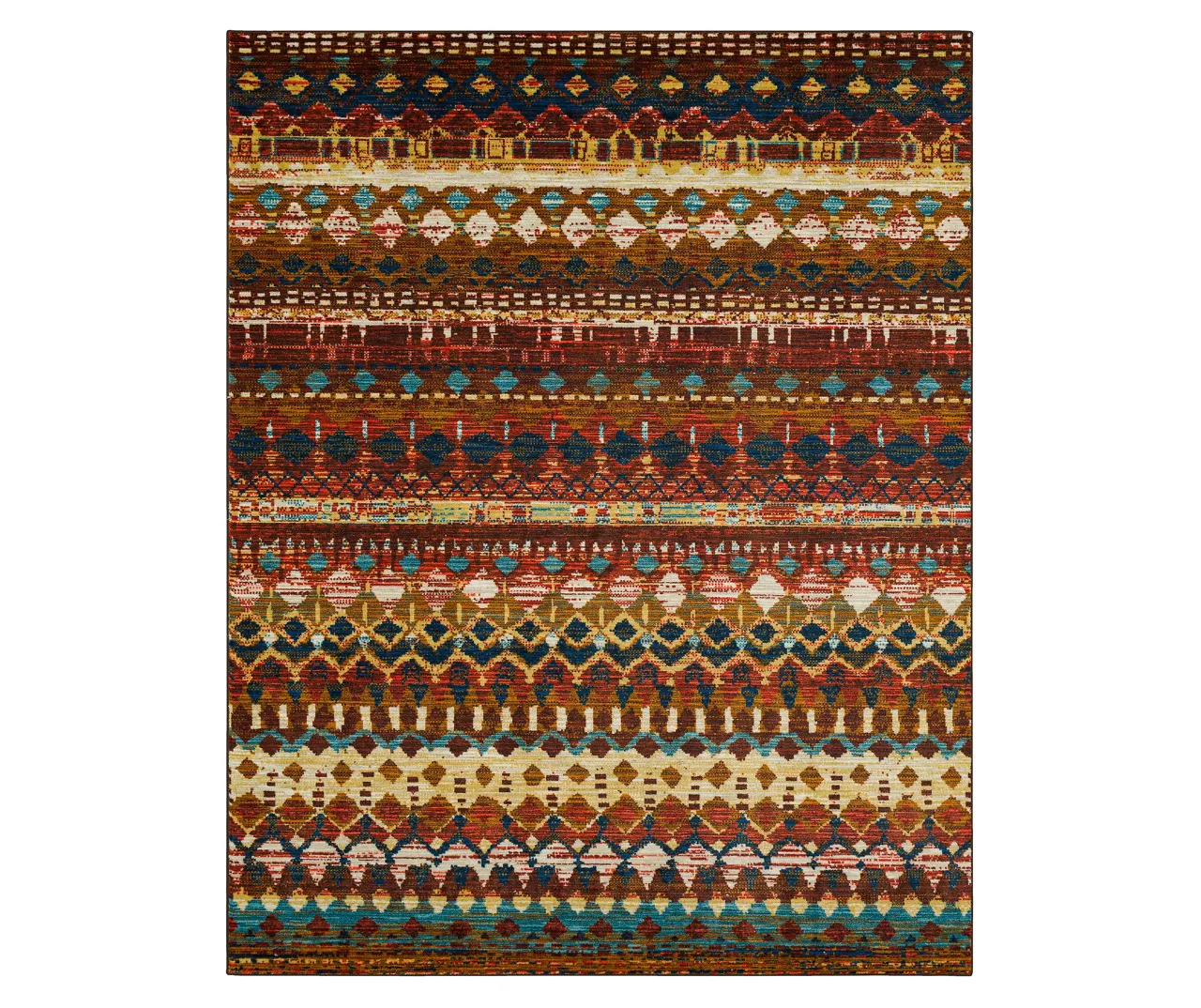 Mohawk Home’s Gulla Stripe area rug features an array of vibrant color within a reimagined Southwest blanket-inspired design. A striated background is overlaid with a bold geometric pattern to create a stunning modern design. Thoughtfully crafted in the U.S.A. utilizing Mohawk Home’s exclusive precision dye-injected printer, this rug is designed on a plush EverStrandâ„¢ tufted base made from premium recycled polyester. A non-skid latex backing helps to keep things in place, and the low pile is durably designed to easily work with doorways or furniture while withstanding everyday use.