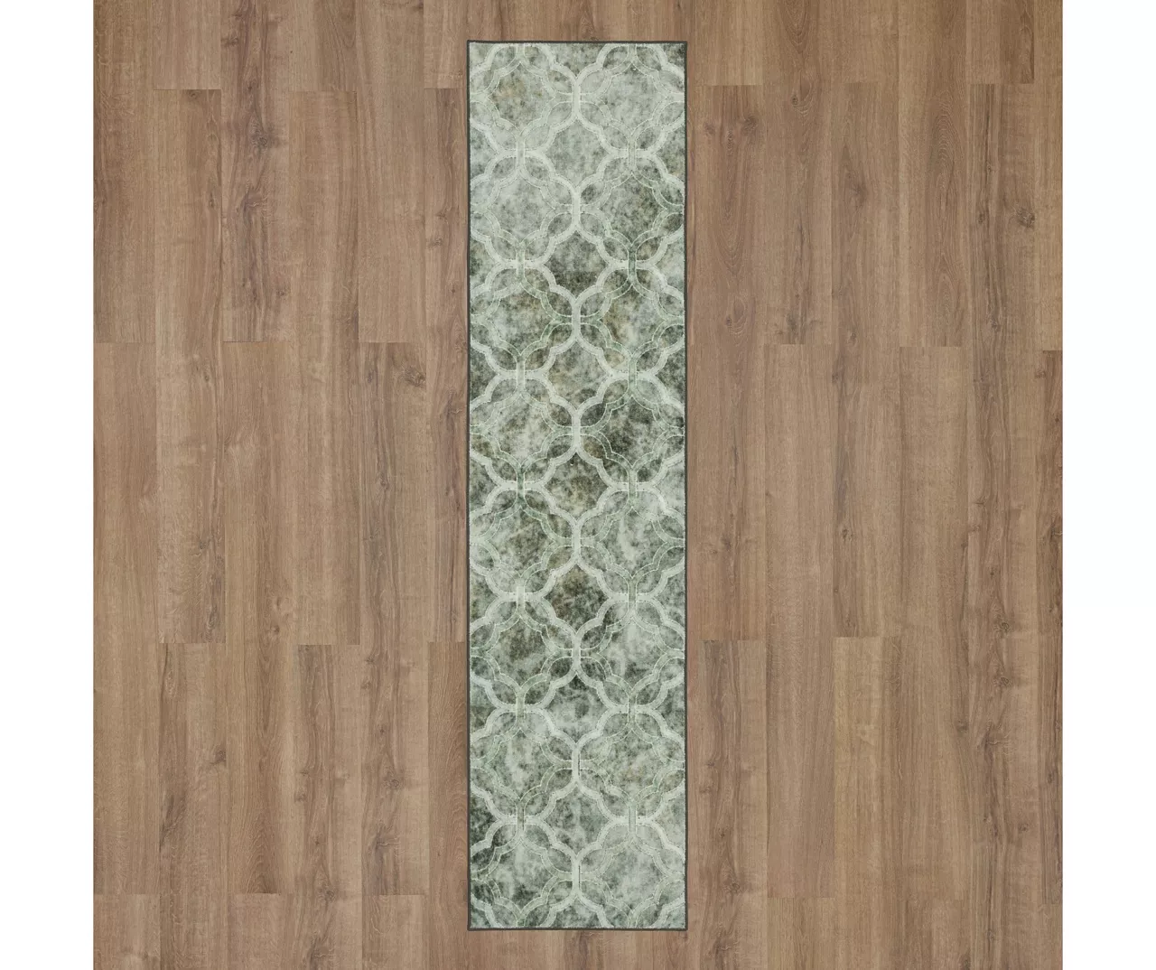 Washes of gray, beige and dark teal create a dimensional background beneath the lattice motif of Mohawk’s Quatrefoil Fret area rug. Thoughtfully crafted in the U.S.A. utilizing Mohawk Home’s exclusive precision dye-injected printer, this rug is designed on a plush EverStrandâ„¢ tufted base made from premium recycled polyester. A non-skid latex backing helps to keep things in place, and the low pile is durably designed to easily work with doorways or furniture while withstanding everyday use.
