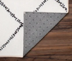 Snag this eye-catching yet understated decor staple! The Moroccan diamond rug in ivory features a neutral color story that suits just about every decor style. Easily style this versatile piece in your master bedroom, living room, entryway or RV, and watch this trendy rug quickly become the focal point. Protect your floors from spills and scratches and wash away germs with a full line of no-fuss rugs. My Magic Carpet is an eco-friendly alternative to traditional rugs. This rug is made of non-allergenic, stain-resistant microfiber polyester, with a waterproof inner liner and a non-slip backing.