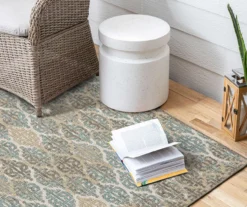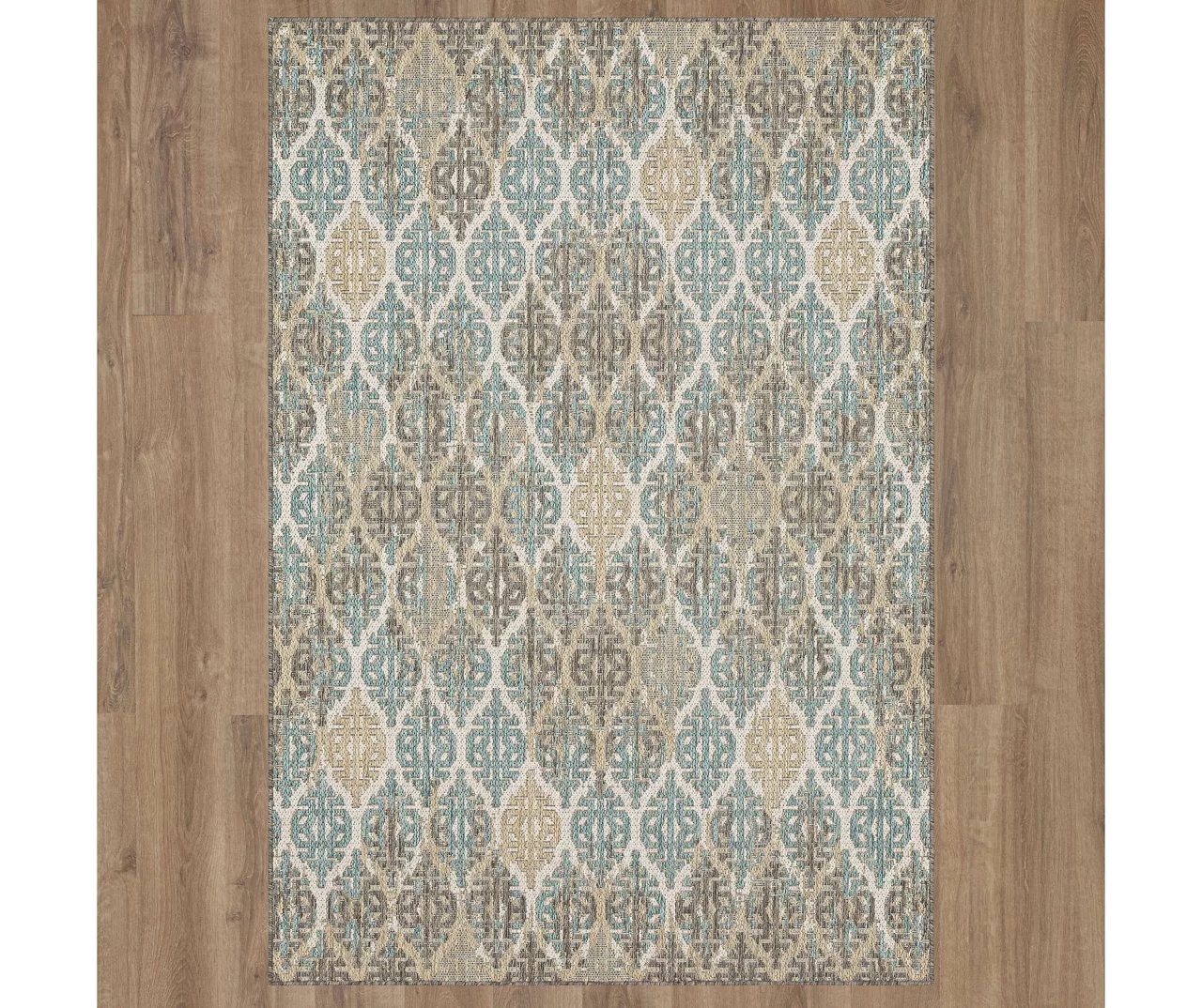 The Mohawk Home Paradise Grove area rug features a scrolling arabesque design in a lovely gray and turquoise palette. Made with all-weather olefin polypropylene yarn, this flatwoven area rug offers a detailed design, soft feel and dependable durability that works in both indoor and outdoor spaces. The resilient surface fibers are resistant to stains, fading and moisture, making it a great choice for high-traffic areas.