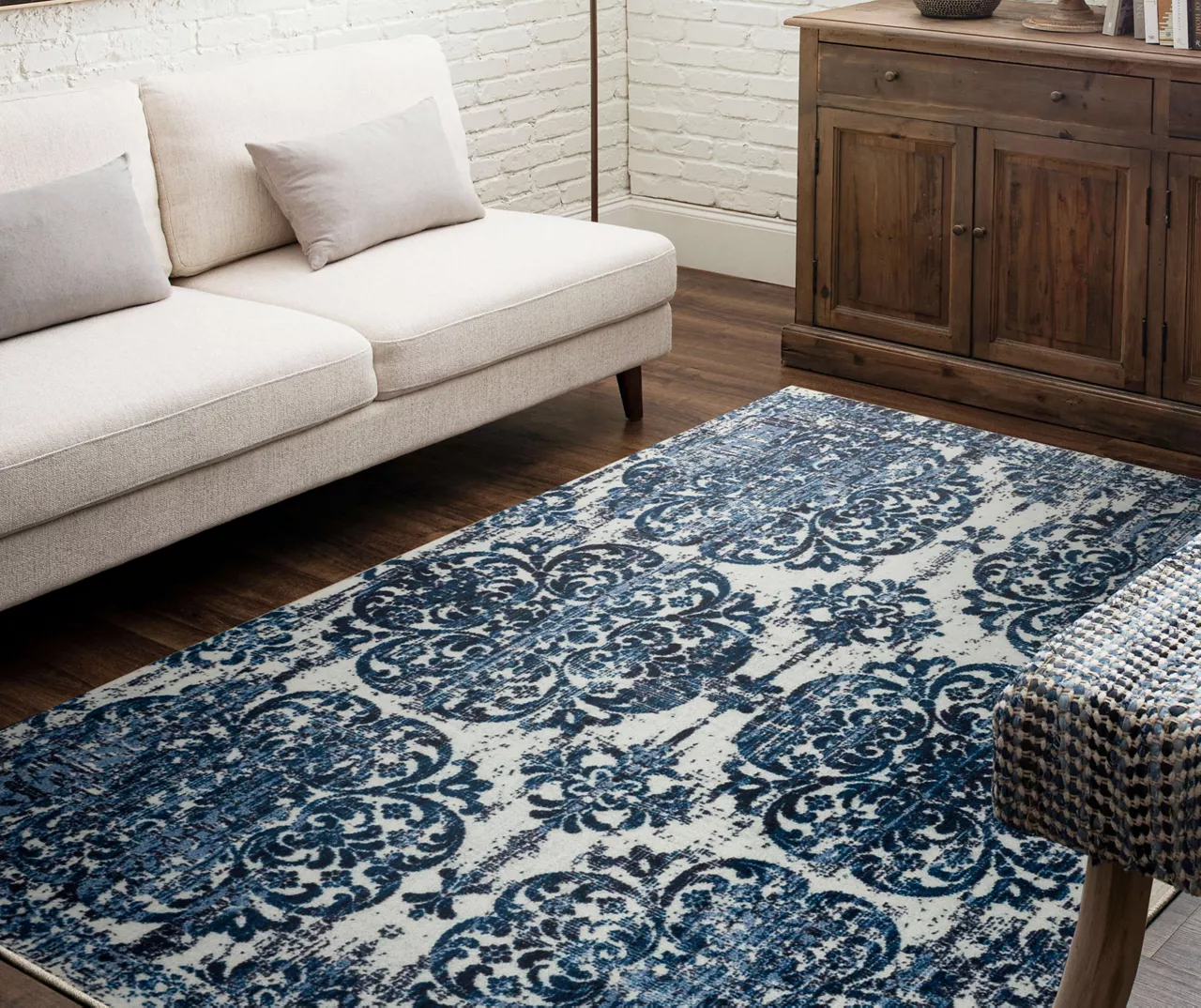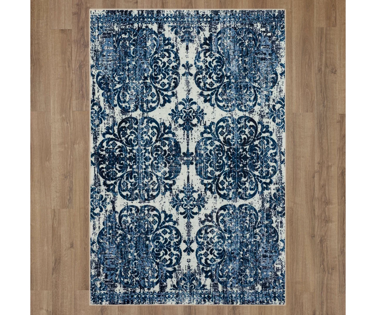 Luxuriously overdyed hues of navy blue, indigo and white illuminate the highly stylized scrolling medallions of Mohawk Home’s Portgate area rug. Showcasing a distressed finish with the use of subtle shibori dye techniques, the Portgate offers a refined, boho-chic style of its own. Thoughtfully crafted in the U.S.A. utilizing Mohawk Home’s exclusive precision dye-injected printer, this rug is designed on a plush EverStrand™ tufted base made from premium recycled polyester. A non-skid latex backing helps to keep things in place, and the low pile is durably designed to easily work with doorways or furniture while withstanding everyday use.