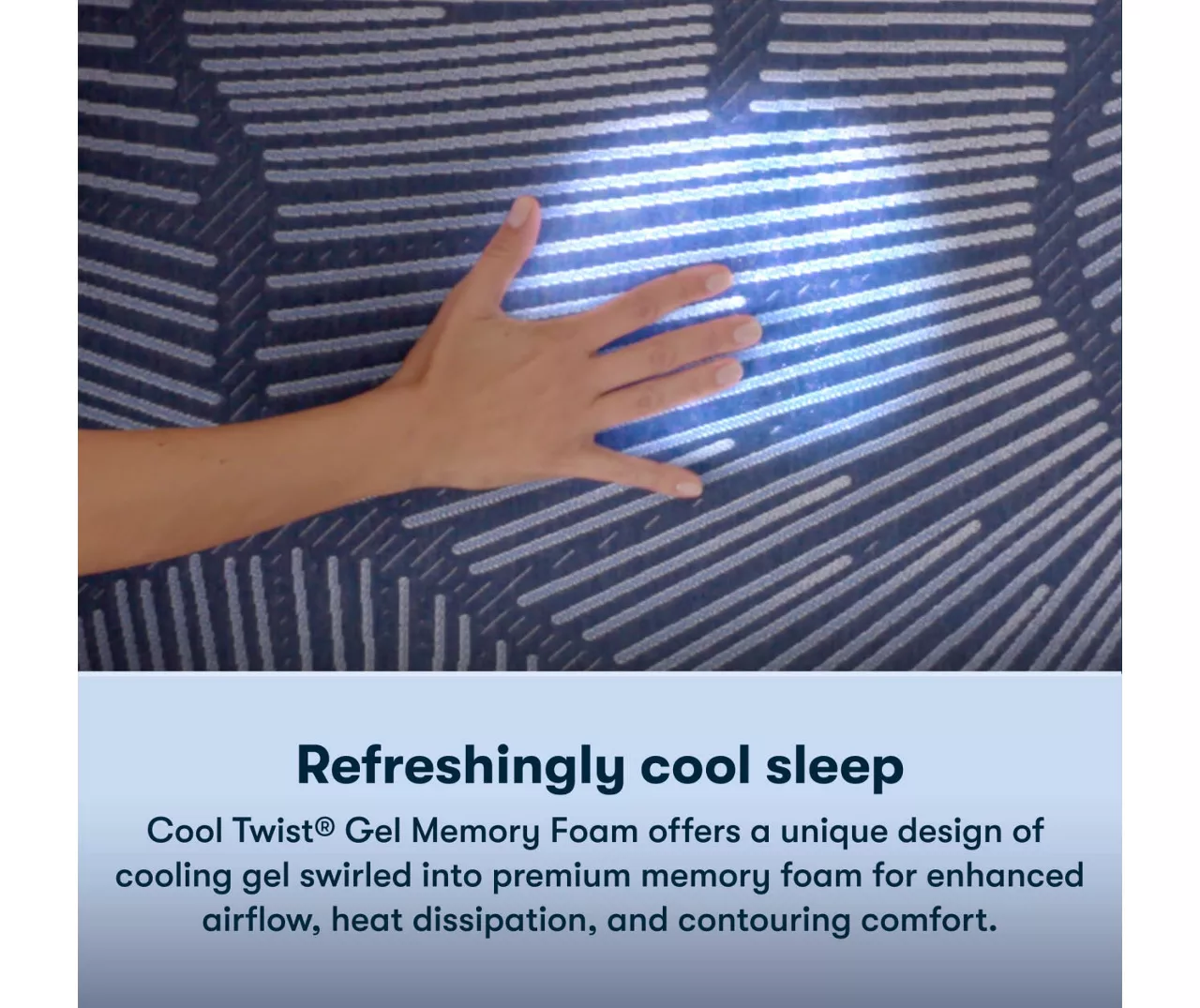 - Cool Twist Gel Memory Foam features cooling gel swirled into premium memory foam, helping to enhance airflow and heat dissipation for a feeling that can only be described as a cool, contouring type of comfort