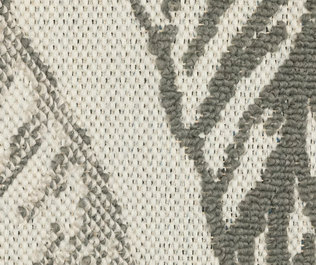 The unique power-loomed construction of the Torian collection features both flatwoven and loop piles, giving the rug a soft, textured feel underfoot that’s durable enough to enjoy both indoors and outdoors. The cozy fibers are defined by a leaf pattern in light shades of beige, gray, green and blue for a modern botanical complement that easily fits into your living and outdoor spaces.