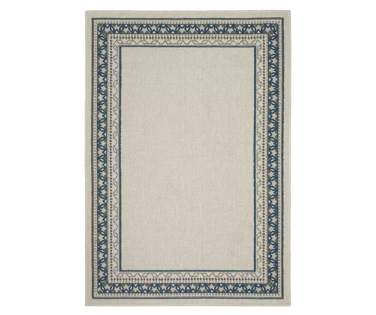The unique power-loomed construction of the Torlea collection features both flatwoven and loop piles, giving the rug a soft, textured feel underfoot that’s durable enough to enjoy both indoors and outdoors. The cozy fibers are defined by an intricate zigzag border design in neutral shades of beige, blue and gray for a traditional decorative complement that easily fits into your living and outdoor spaces.