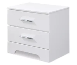 With its geometric patterned front, this geometric gray nightstand will add texture and depth to your space. The nightstand has a full textured geometric front accented with square gold hardware and round, gold dipped legs. It is truly dressed to impress! Two deep drawers provide ample storage space for books, electronics and more. Its lovely gray finish allows this piece to easily be incorporated into any existing decor.