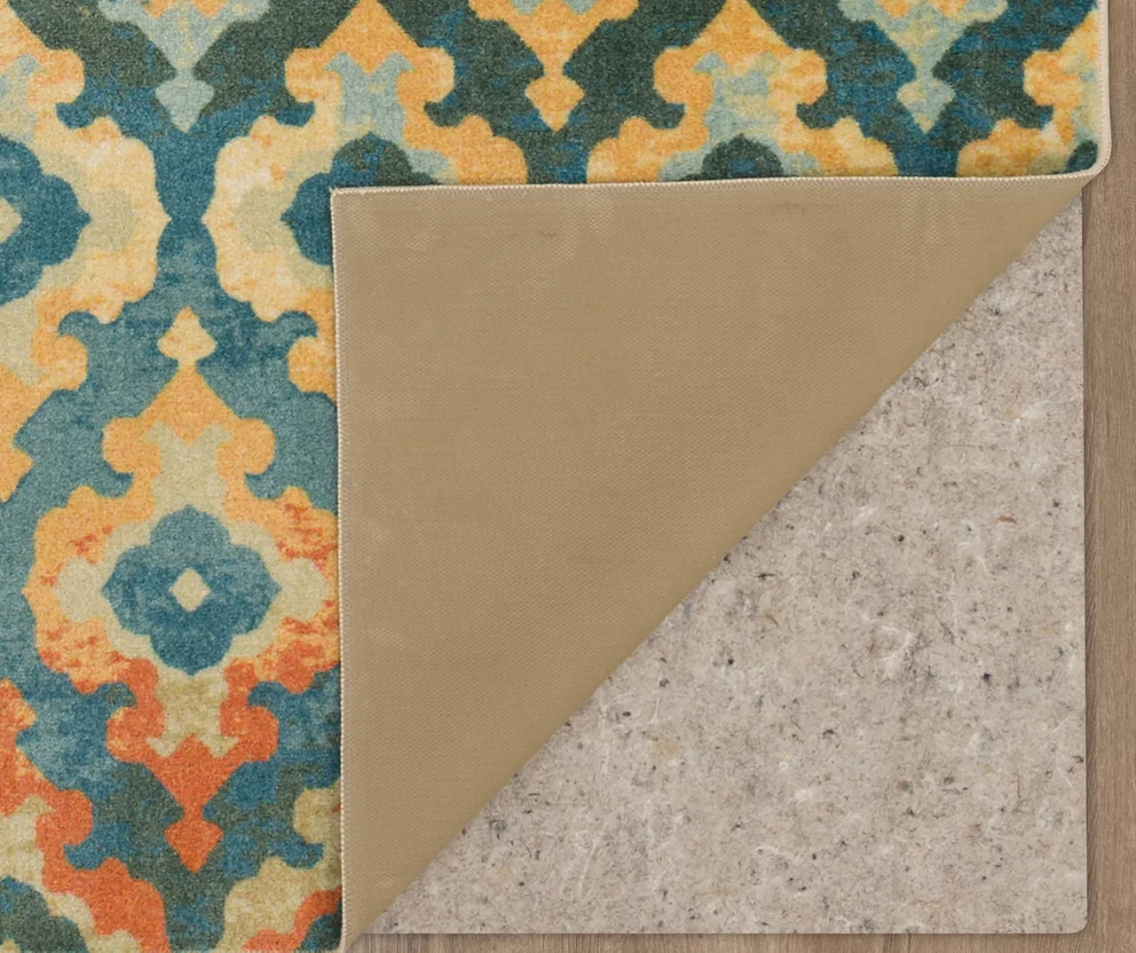 Embrace Venetian-inspired style with this precision dye-injected Zarel area rug from Mohawk’s Prismatic collection. This EverStrand™ rug has an intricate arabesque pattern in copper and teal, reminiscent of patina copper detailing in Mediterranean design. Original artwork is digitally printed over a plush canvas of Mohawk Home’s exclusive EverStrand™, a premium synthetic yarn created from post-consumer recycled plastic bottles. While EverStrand™ is renowned for its softness, this silky yarn also offers superior strength, stain resistance, illustrious fade-resistant color clarity and dependable durability ideal for high-traffic spaces with kids and pets.